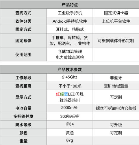 声光查找型电子标签输出内容 |